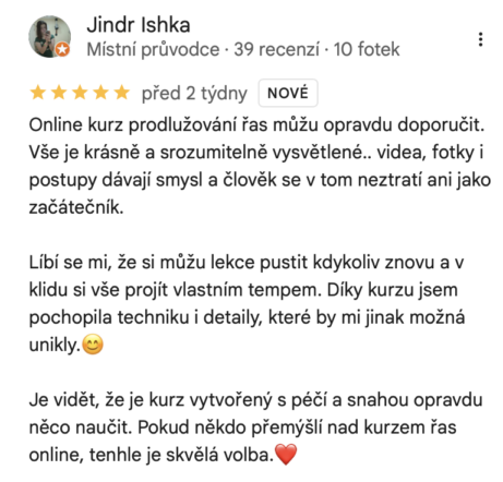 - Tento kurz školení řas jsem vypracovala, abych se podělila o své znalosti a zkušenosti se svými kurzistkami a pomohla jim v této oblasti uspět.