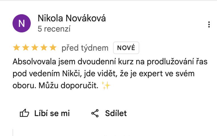 - Předávám Ti cenné rady a poskytuju tak kompletní informace, které budeš v oblasti prodlužování řas potřebovat.